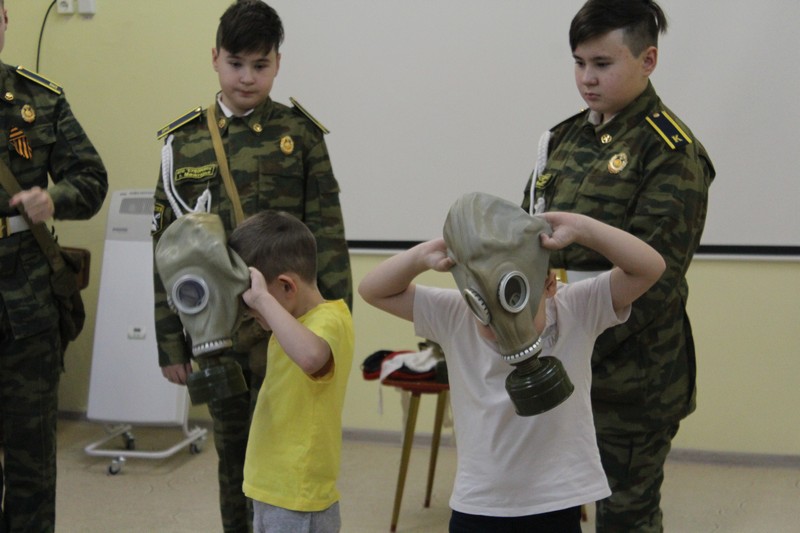 25 октября активисты ВПО "Юнармия" Юрочкин Никита, Аминов Айдар, Аминов Айрат (руководитель Васючков Ю.В.) встретились с детьми старшего дошкольного возраста МАДОУ д/с № 2. Юнармейцы рассказали детям о средствах индивидуальной защиты органов дыхания: противогаз, респираторы, противопыльная тканевая маска, ватно-марлевая повязка. Рассказали в каких случаях ими пользуются. Продемонстрировали как правильно необходимо надевать противогаз. В заключении мероприятия Юнармейцы провели практическое упражнение "Газы".